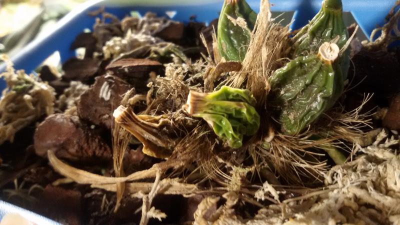 цветонос и рост,но по фото они мне показались усохшие или замоченные ,если и живые то рост забьет цветонос .Попробуйте поливать по краю горшка,и смотрите дальше