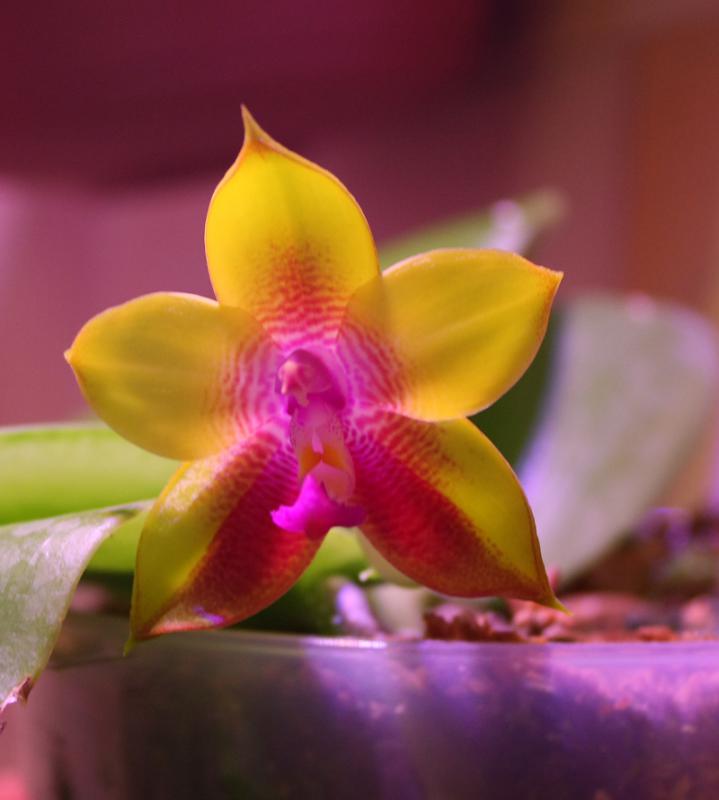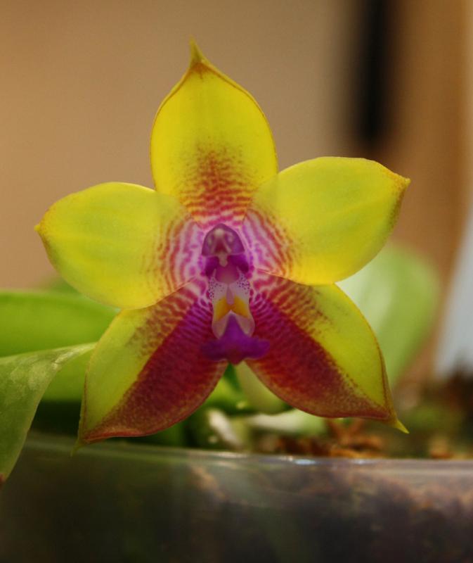 Зацвел Phal.Dragon TreeEagle DT168, получала в конце мая из Юченга, заказывала в размере"С", пришел о двух с половиной листьях юноша, без признаков цветения, за это время вырастил лист и порадовал первым цветоносом и цветочком.