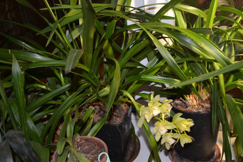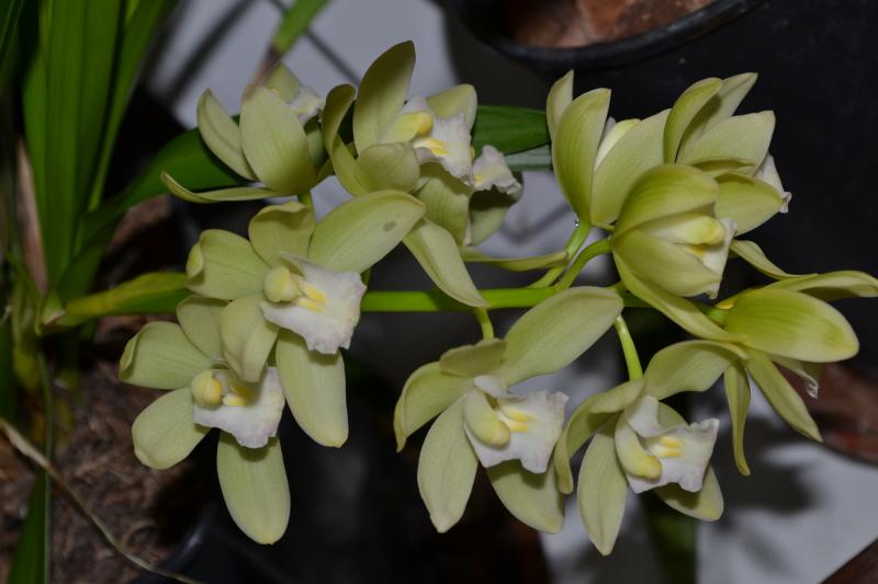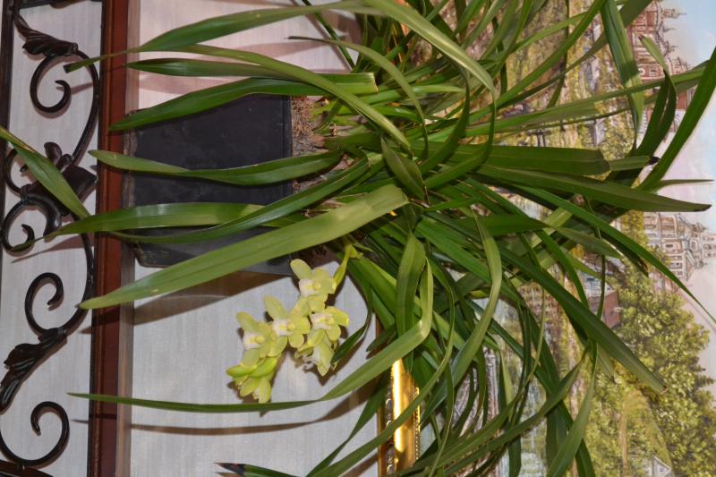Цимбидиум Ice Cascade. Летом подопрел цветонос и процвел всего 4-мя цветочками. Сейчас вся стрелка в роспуске.