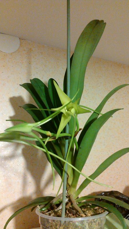Черепаха Тортила, Ален, я сама поразилась, что он уже в ноябре выдал бутон, это его второе цветение. Сейчас напишу все по порядку - первое цветение тоже было в декабре 2013,http://passiflora.club/showthread.php?t=13982&page=187&p=314756&viewfull=1#post314756 цвел с одной розетки. Потом в мае переехал на лоджию и я заметила две малюсенькие розетки по 1 см, одну стал очень быстро растить, в июле хотела продать, делала фото одна розетка уже достаточно крупная была, вот с нее и расцвел мой непродавайка. Ничего особенного не делала, стоял на свету, но солнце на него не попадало, удобряла реже чем фаленопы, где-то раз в месяц - буцефалом и реасил для орхидей, за лето один раз получал цитовит и один раз феровит по листу, дорогих удо у меня нет, для профилактики гриба поливался алирином. В сентябре всех перенесла в кухню под досветку. Помню, что в первое цветение долго рос бутон, но тогда поливала реже, мне все казалось, что у него кора внутри достаточно влажная, сейчас как только мох сверху просохнет.