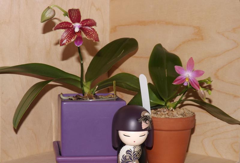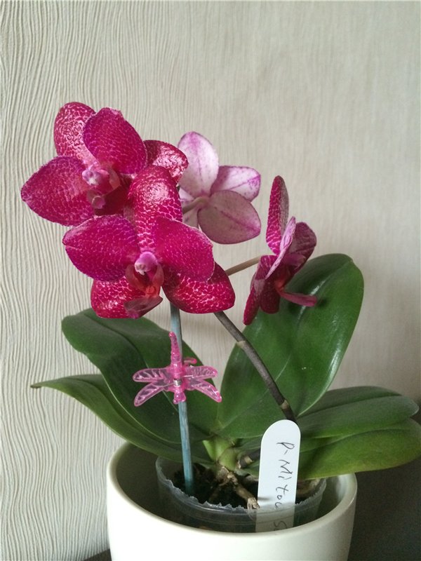 У меня пополнение ))) Распустился Phalaenopsis Samt und Seide Sophie x sumatra, пришедший перед НГ от Люка со сломанным цветоносом. Через несколько недель пошел ветвиться и вот два бутончика вытянул. Ничем не пахнет, а вот виолацейный гибрид на второй день после роспуска начал источать аромат... лимонада )))))))