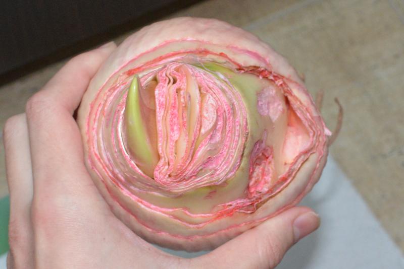 Прошло 2 дня после обработки Максимом. Кроме тех 4-х луковиц, достала ещё одну из горшка, купленную уже в нём наверно прошлым летом, отделила детку и тоже обработала.Беспокоит меня самая пострадавшая луковица. После обработки Максимом ещё одна не поражённая стрелка не была красной, как и у других луковиц ни стрелки ни листья не окрасились, и ещё вчера утром не была, а сейчас покраснела...