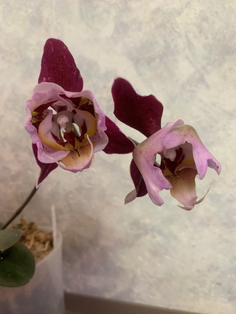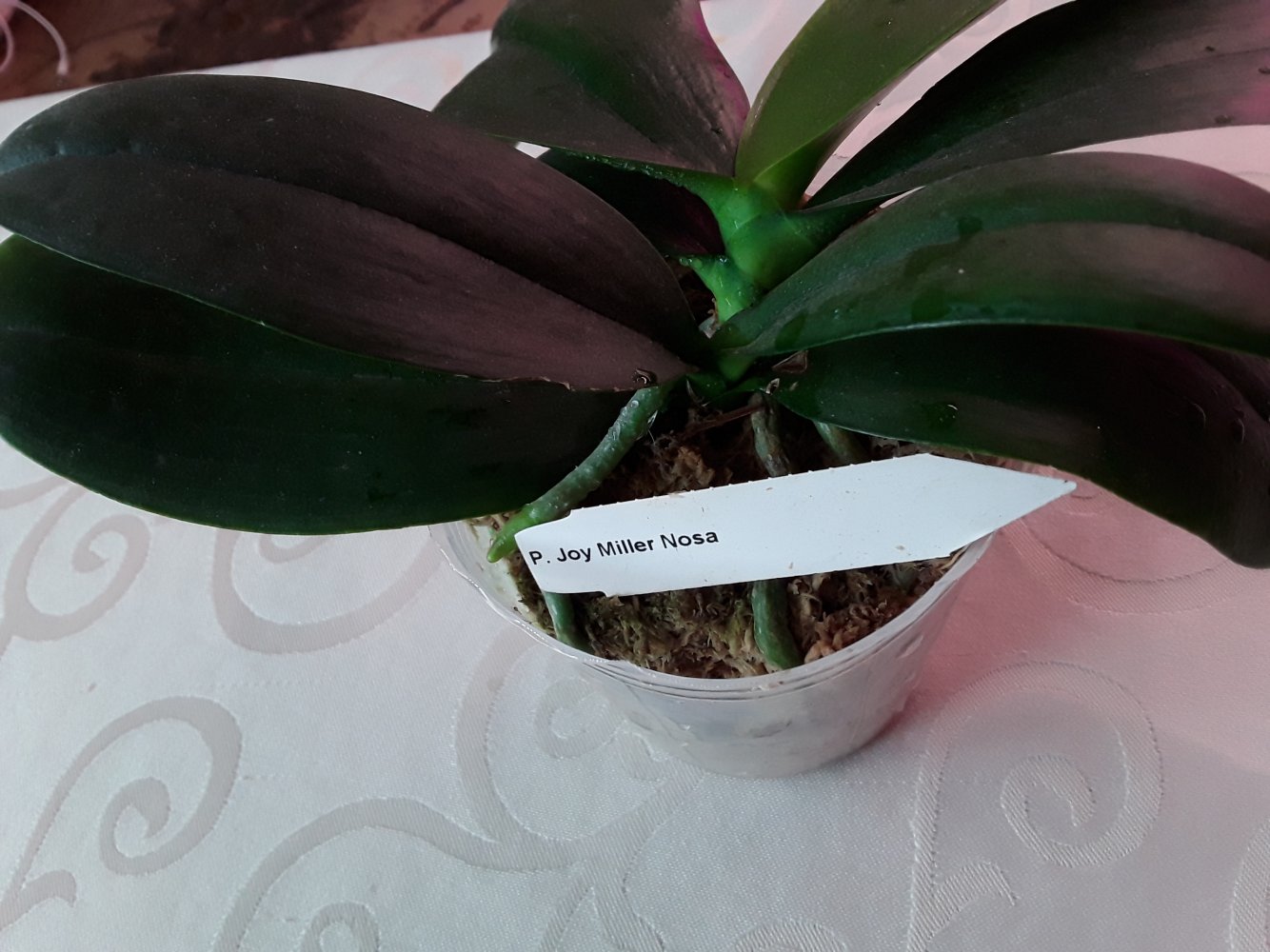 Поделюсь историей одного фаленопсиса от этого поставщика. В силу своего предыдущего негативного опыта с фаленопсисами от него, перестала здесь их заказывать. Сразу скажу, что все получала очень маленькими и в размере 1,7. Весной 2019 года после прихода Джой выставили на продажу из наличия много фаленопсисов от этого поставщика. Не устояла, взяла несколько разных. Получила все в горшках размера 3 близко к размеру цветения. Корней у стенок было мало. В их числе купила P. Joy Miller Nosa. На момент покупки у него было 4 взрослых листа, верхний был надломлен глубоко у основания, но в остальном хорошее растение. Всех оставила как есть, никого не пересаживала и никак не тревожила. P. Joy Miller Nosa постоял немного и вскоре заметила у него пимпочку у основания розетки. Обрадовалась, решила, что цветонос. Но это оказалась прикорневая детка. Росла она быстро и хорошо. Старая розетка полностью замерла в росте, даже корни не растила. К этой весне детка уже обогнала по размерам материнское растение, стала активно растить свои корни. Мох уже порядком испортился. Но помня свой негативный опыт с предыдущими пересадками фаленопсисов от Джой, боялась даже дышать на него, не говоря уже о пересадке. Кстати, другие от Джоя также прекрасно росли дальше в этих же горшках и мху, как купила. И тут на ютюб канале Пассифлоры вышло видео о пересадке фаленопсисов как раз с фермы Джой! пересмотрела несколько раз и решила рискнуть, посадить в точности как показано именно все фаленопсисы от Джой (хотя ранее так никого не пересаживала). Сделала все как показано в ролике. Очень боялась туго набитого мха, что корни загниют. Но к моему удивлению, все пережили отлично, даже не показав никакого недовольства, прекрасно продолжили расти дальше. Тогда пересадила по такому же методу еще несколько фаленопсисов - начиная от малышей 1,7 практически без корней и заказнчивая взрослыми в 2,5. Всем без исключения пересадка пошла на пользу. У кого с корнями были проблемы - стали отлично их растить. И вот как на сегодня выглядит P. Joy Miller Nosa - старая розетка так и не стала расти дальше , но корни от нее еще живые. Зато детка отлично выросла и растит прекрасную корневую. Очень надеюсь вскоре увидеть ее цветение)).