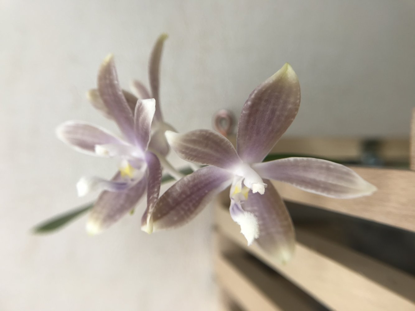 И все равно это не вся правда))) он то бежевый, то свинцовый, а иногда бледно серый упырь))) покажу обязательно, бутончики подрастают. К сожалению, это растение безголовое, сгнил лист в дороге. И вместо детки растит третий цветонос(( Купила второй на всякий случай.