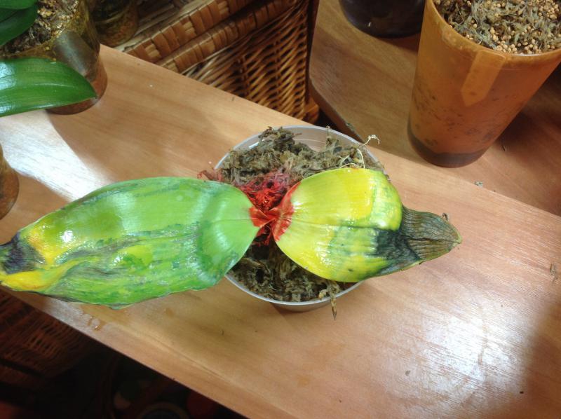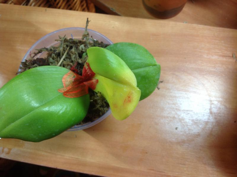 Вина этого листика в том, что растение чуть более сильное, чем другой гибрид, и поэтому листик еще не отвалился, но его основание уже в бактериалке и шея вся желтая. Ну, если вы или бридеры умеете такое выхаживать, то уж простите, что я не волшебница.
