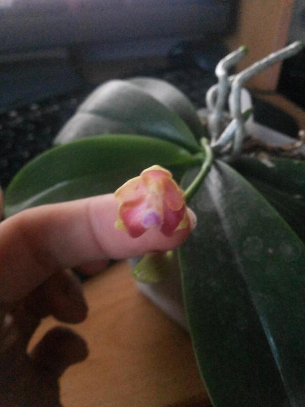 У него нарастающий цветонос. Значит на солнце след. цветок распустится ярко-красный. Моему даже без подсветки хватило мартовского солнца.(юго-запад)