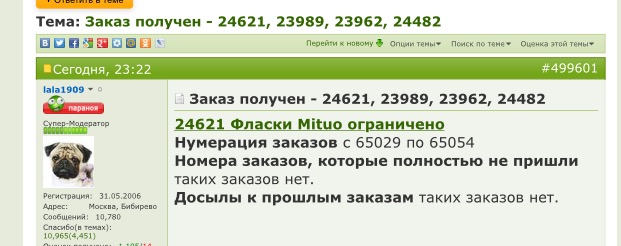 Форумчане, кто заказывал фласку от Митуо , у вас статус заказа изменился? У меня нет. А тема есть, что пришёл.
