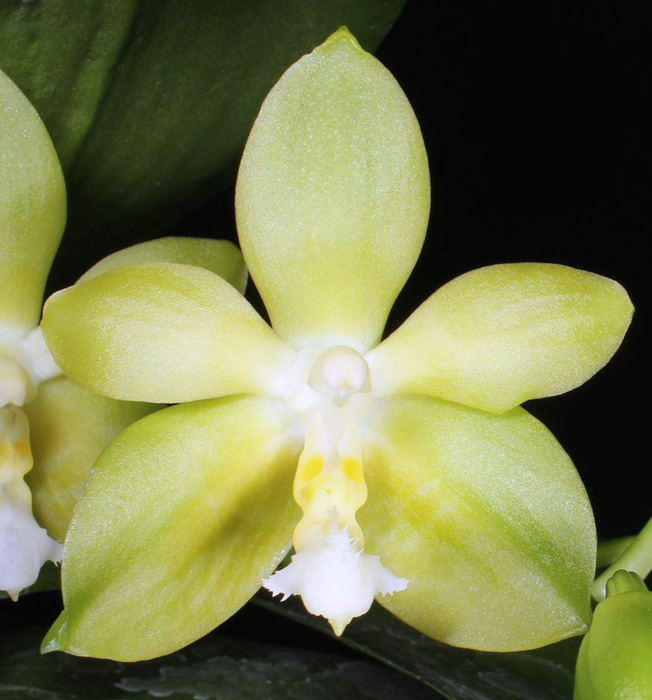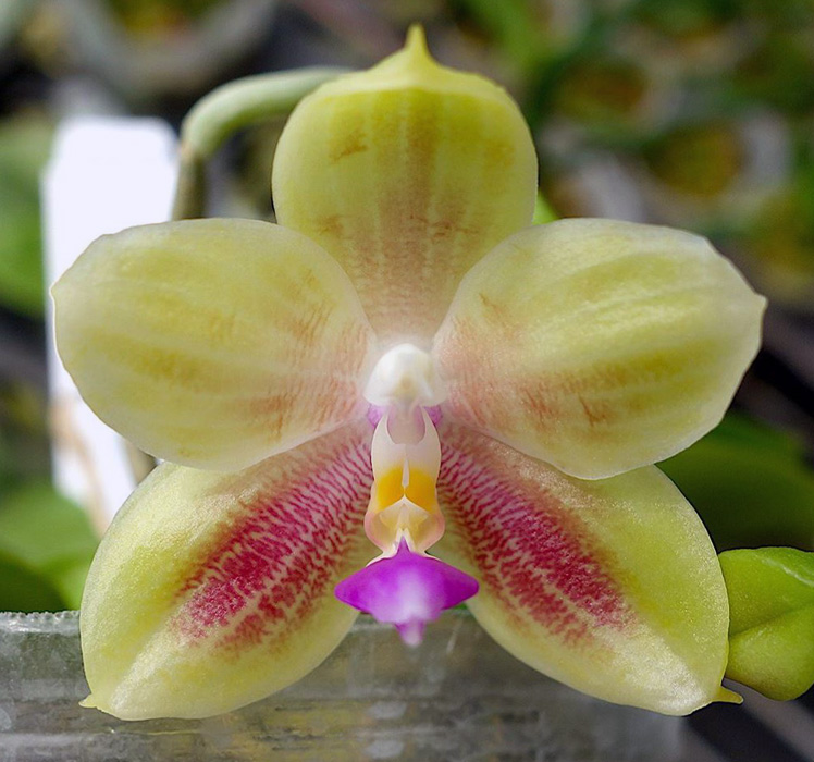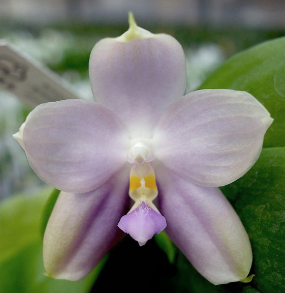 Старый добрый гибрид (1995г), 4 раза награждён AOS. Из описания награждённого AM/AOS культивара - substance firm; texture waxy (плотный, восковой) Размер цветочка - 4.9см х 5.5см.