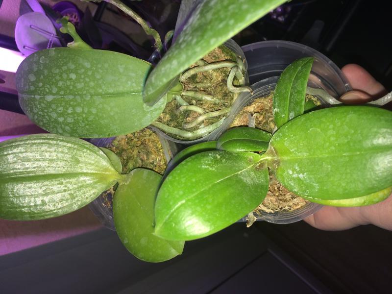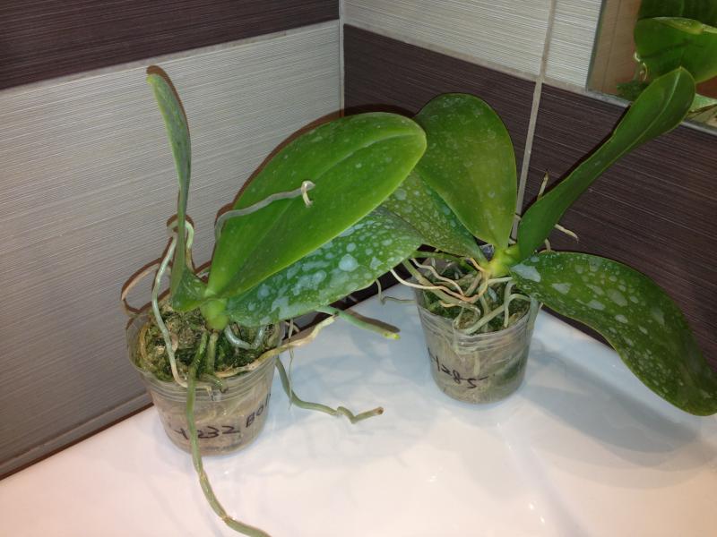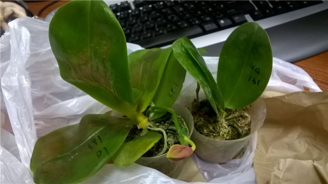 А вот два-расстройство.242 Phal.ld Bear King" YK-1" Phal.Bellina "Peter# 2"-бактериалка ,два центральных листа вывалились при раскрытии упаковки.Боюсь не жилец.