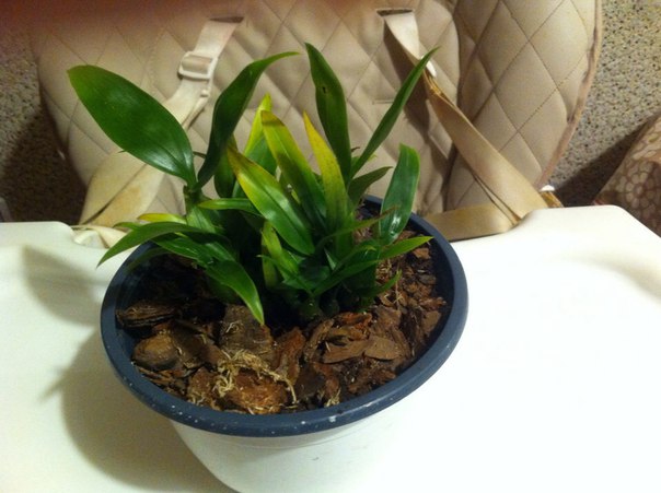 Coel cristata 12cm 1-3 цветоноса!!! Было 4 цветоноса,1 цветонос в дороге отломался (болтали сильно в этот раз посылку,упаковано отлично,но грунт внутри упаковки вывалился частично). Осталось 3 цветоноса,кончики почему-то желтые с черным окончанием.Надеюсь, вырастут у меня.
