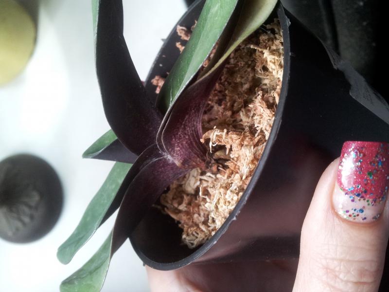 4.Растение с засохшим цветоносом,в сухом мху,сильно пересушено.Листья в пятнах.Похоже на ожоги.В горшке два растения.Да,выглядит не очень,но я довольна.Гнилей нет,корни живые и их много.Отпоим.Огромное спасибо всем причастным,а особенно Елене за заботливую упаковку!!!IMG_20160519_131329.jpg