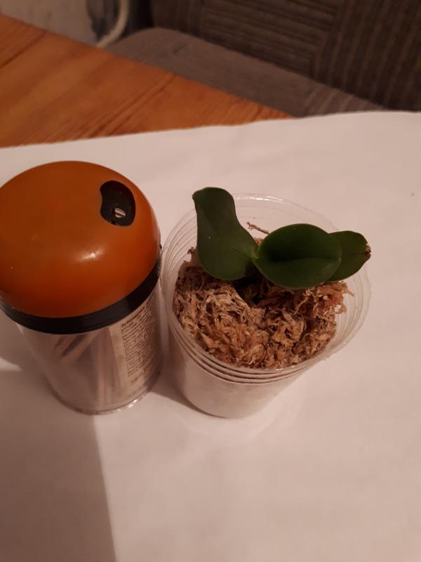 Горшок 2,5 ей явно на вырост, причем на через год :). Всего 3 листика: 11см, 8см и 5 см (самый маленький за лист не считаю, т.к. из горшка просто вывалился, причем давно он там просто лежал). 6 корешков, длина самого длинного 4 см, есть гнилые. Ожидание, конечно, было на полноценный 2,5. Растенье сидело во мху, и он так слежался, что туда запросто можно было поместить еще одно такое же. В целом, растенье хорошее.