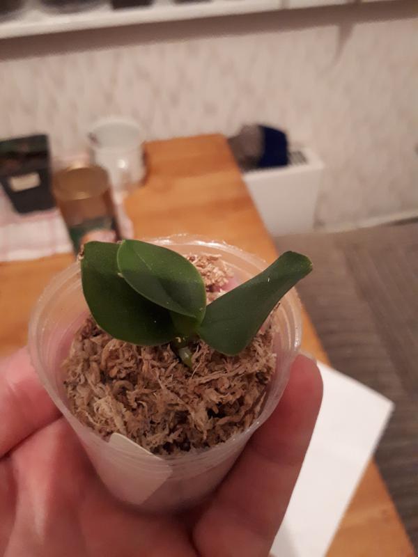 Phal. Philadelphia - пришла отличная небольшая и крепкая растюшка. 2 пары листьев. Из горшочка сразу вывалилась - отличные крепкие здоровые корни! Как мне нравится окрас ее листьев! Супер!