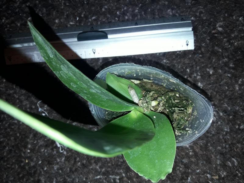 Хорошее, взрослое растение. Цветонос отрезан, видно что резали ещё живой и цветущий. Корни живые, такие розовенькие...пятен нет. Один нижний лист желтит. Очень довольна.