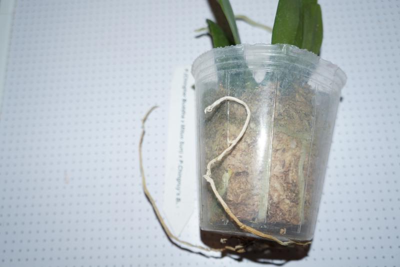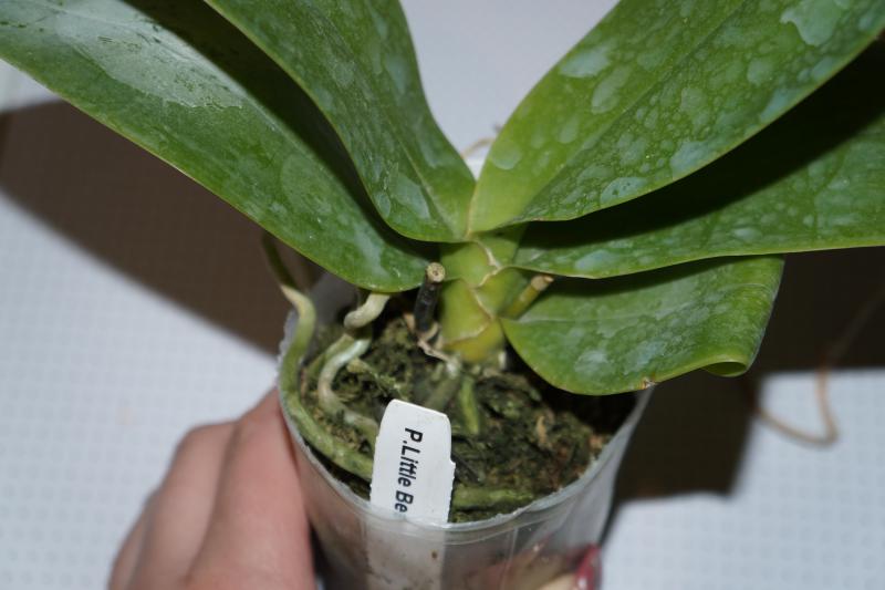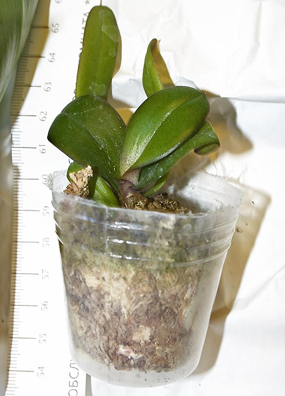 Получен Phal. Little Orange type 2 как и заявлено цветущий, правда цветочки скинул, листья в хорошем состоянии 3 пары, а вот с корнями беда, будем наращивать.