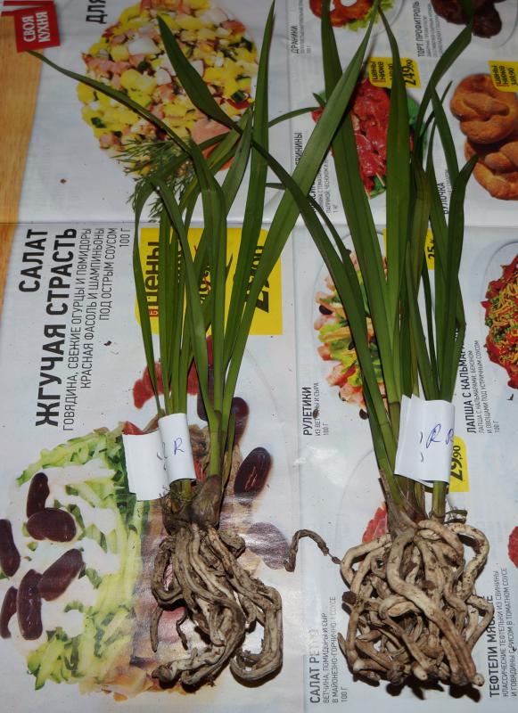 Растения без гнили, насекомых, с ОКС. После отмачивания стало видно, что часть горней гнилые, но много и хороших корешочков. Растения в нормальном качестве. Одно огорчает, что Cymbidium Red Ruby Splash просто кроха- до цветения ему ну очень далеко, было бы хорошо, если бы эти две былинки выжили бы. На фото самый маленький Cymbidium Red Ruby Splash, средний Cymbidium Green Valley Emerald, и самый большой с новыми ростами Cym. Romantic Sakura- вот он точно размера цветения. В целом заказом довольна. Спасибо всем причастным:camomile: