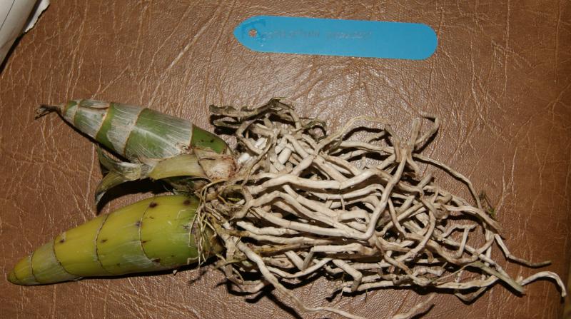 Catasetum planiceps - Две взрослые бульбы, много живых корней. Рост сопрел, но уже рядом проклюнулся новый. Отличное растение.
