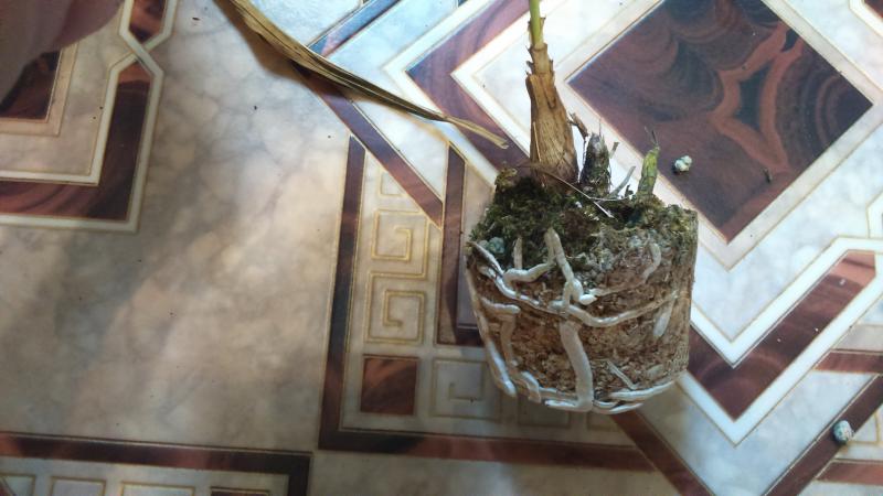 Взрослое растение, 2,5 горшок, компактное, 4 листа длиной 7-8 см, 2 старых цветоноса. Корней много, есть гнилые, хороших больше. Листья в тургоре, мох сухой. Есть след на одном из листьев предположительно от нематоды. Буду наблюдать. Спасибо за заказ.