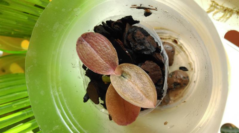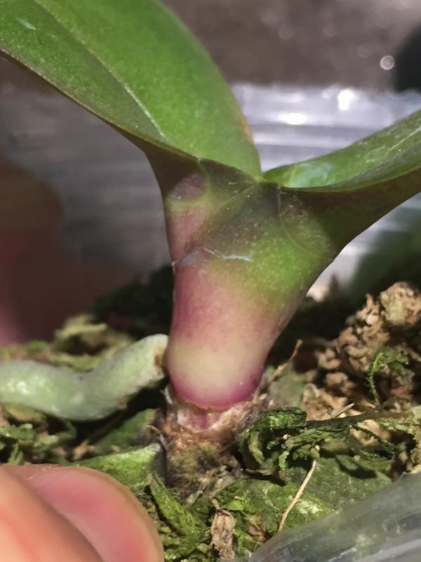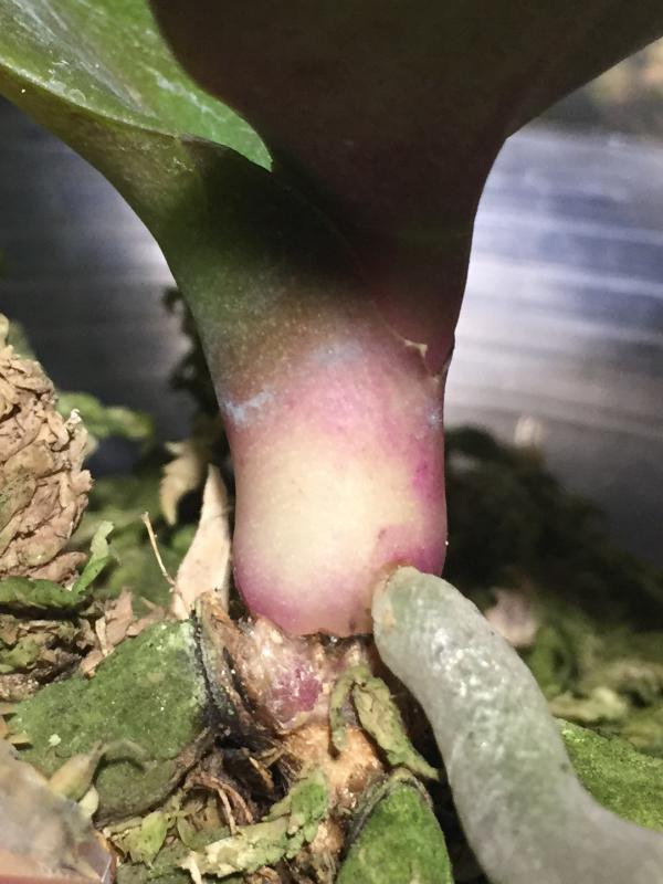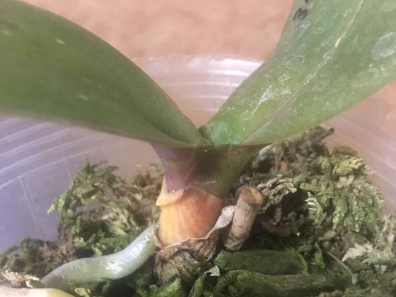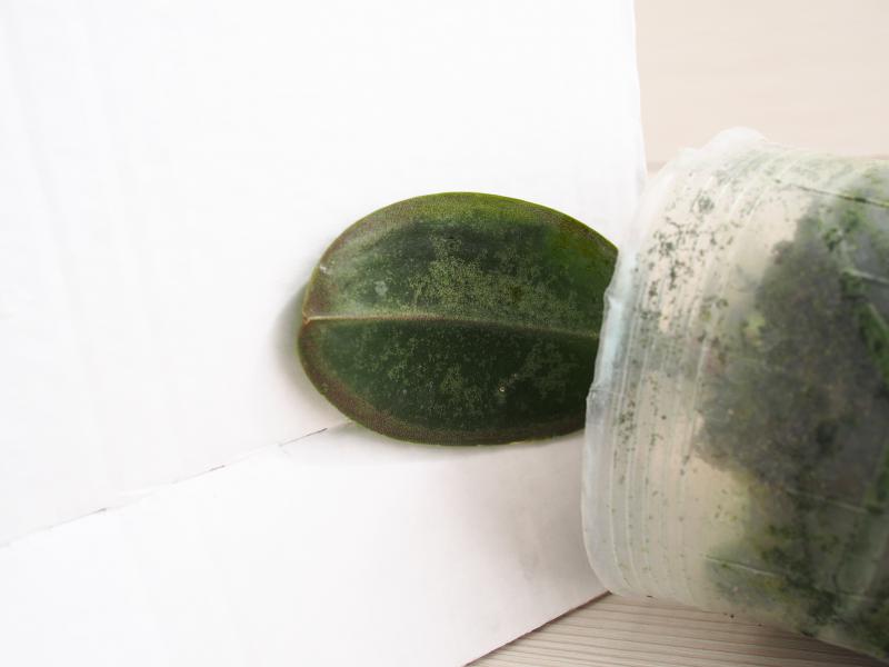 У Tetraspis Purple успели сопреть почти все корни и слез веломен, осталось 2 корешка, которые были над мхом и подозрительное мокрое пятнышко на листике у шейки. Аккуратно сняла листик, мокнущее пятно до шейки не успело добраться, она чистая.