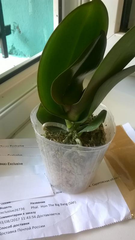 Хоть и пришло письмо на эл.почту, что данный заказ не собран, но я получила надеюсь свое растение - молодое, правда до цветения еще рановато. Два нижних листа пожелтели, отвалились в руках. Корни живы, думаю все будет хорошо.