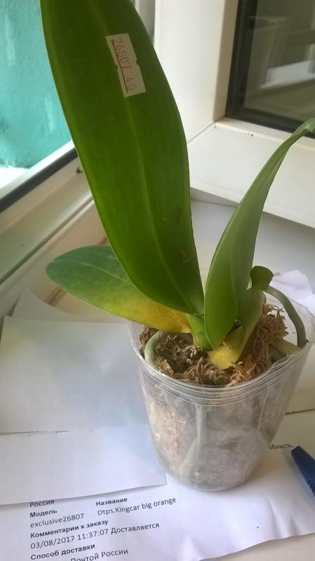 Получено прекрасное, здоровое растение! Листья торчком, пара нижних отпали, корешки живы их много, мох сухой. Присутствие "гостей" не обнаружено. Соответствует заявленному размеру.