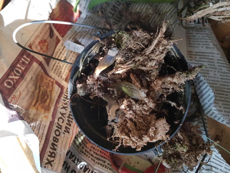 В горшке корней куча, насчитала 5 обрезанных цветоносов.