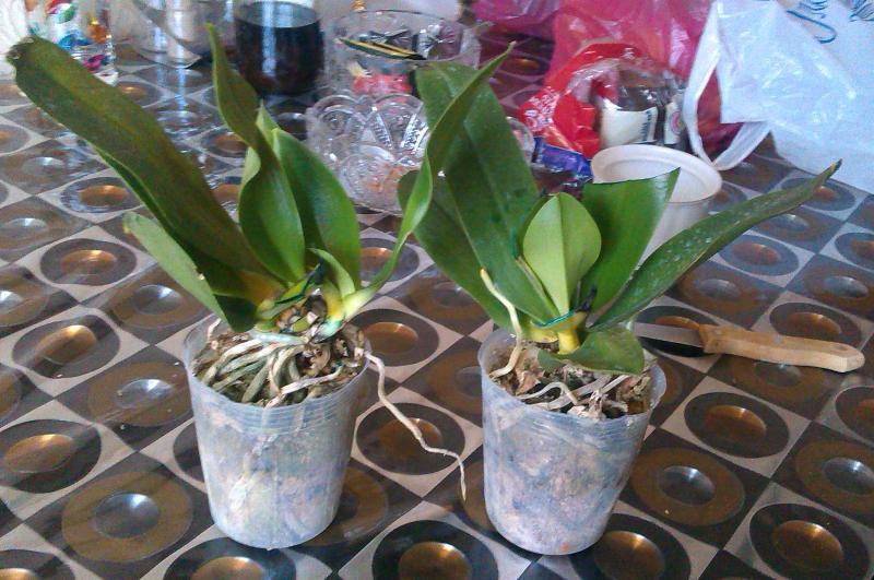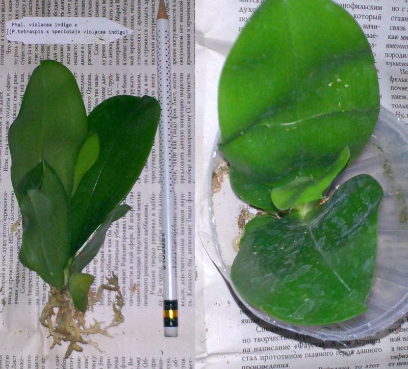 С Phal. violacea более оптимистично. Есть засохший цветонос. Растение истощено, что вполне закономерно. Но тут можно бороться и выиграть)