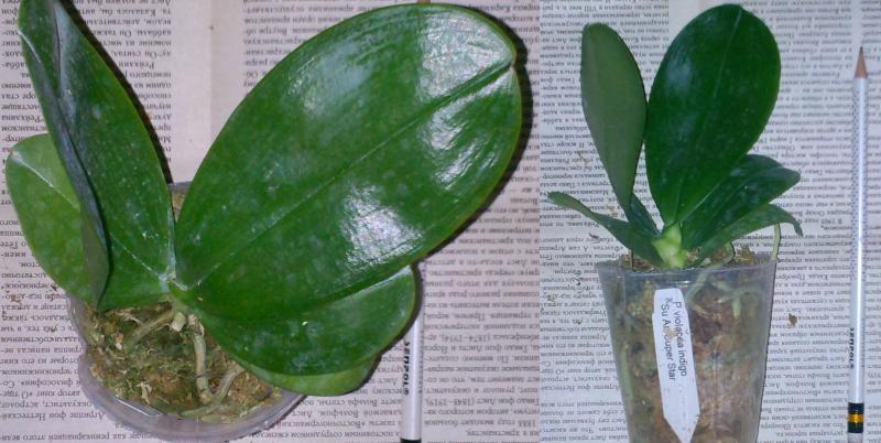 6. Phal. Violacea indigo x s.a.Super star Крепкое растение в сыром мху. Корни живые, 6 листьев, и цветонос с цветком. Цвет скорее пурпурный нежели индиго, может из-за недостатка света в дороге, буду ждать домашнего цветения.. Растением очень довольна!!!