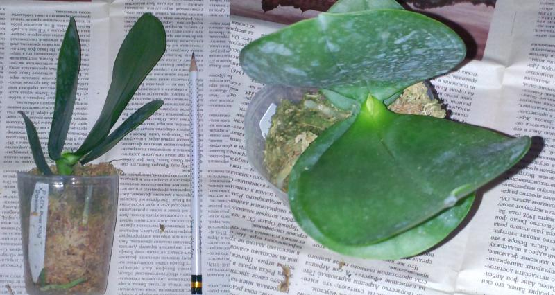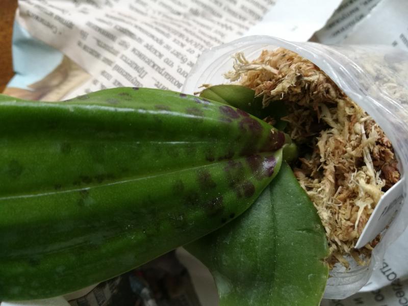 6. Phal. Yellow Chocolate. Качество растений ниже плинтуса... все в цвели, плесени, живого места просто нет. Из газеты выпал конструктор из остатков недогнивших листьев и горшочка с чёрной шеей. Пришло 2 растения, идентичны, лечить и спасать нечего. Хоть реви...