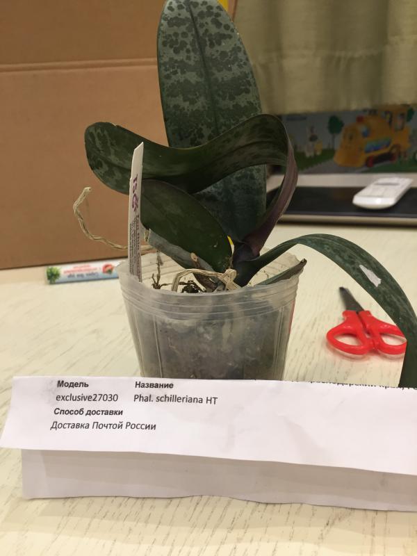 Растение чудное, дорогу перенесло плохо.. имеющийся цветонос скорее всего не покажет в этот раз свой цвет. Обнаружились следы жизнедеятельности паразитов (скорее всего те же улитки постарались).. Вцелом растение хорошее и заказом я довольна))