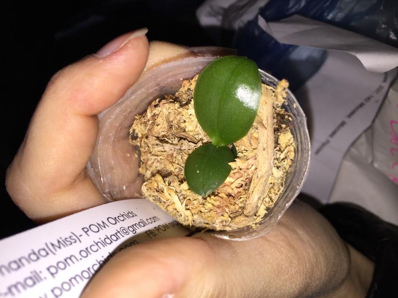 Горшок 1,7", как и ожидала. Симпатичный малыш, самый большой лист 5,5см, самый маленький 2,5-3см, корней сквозь горшок не видно, но от шейки разглядела несколько хороших толстеньких корня.