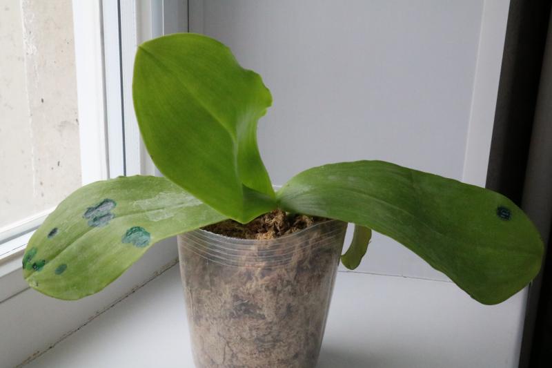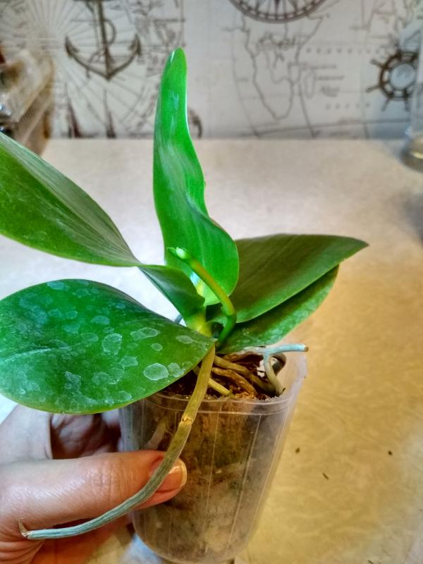 Растение в горшке 2,5", соответствует заявленному размеру, 3 листа, самый большой 7-7,5см, на нем видны желтые, сухие пятнышки, но угрозы, по-моему, не представляют. Другие листики чистые. Корней на поверхности не много, но те, которые видно в норме. В целом, очень им довольна, приличное растение.