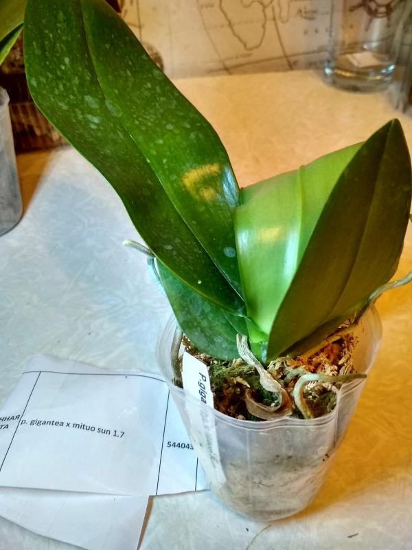 Горшок 2,5", крепкое, крупненькое растение, 3 пары хороших листьев и один новый растущий, самый большой лист - 11,5см, шейка чистая, видимые корни хорошие, ранее не цвел.