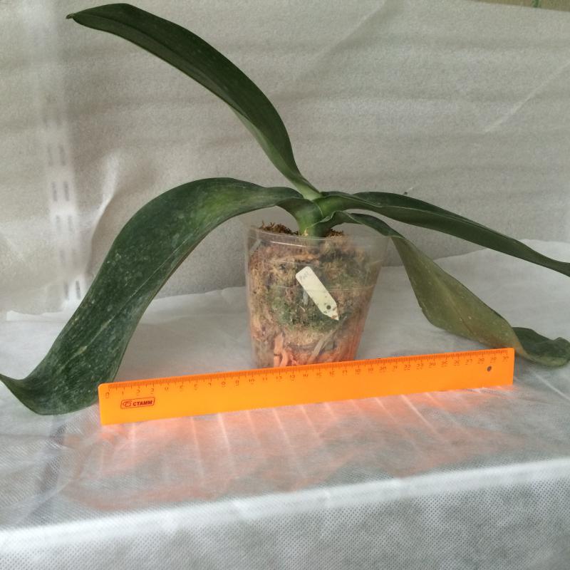 6. В заказе 1 растение P. Mituo prince x samera. Без цветоноса. Размер 2.5. Три пары листьев, куча корней, растение отличного качества, любо-дорого посмотреть, хоть и без цветоноса, надеюсь скоро его увидеть. Пришло в сухом мху, здоровое, крепкое, без живности, но со свежим заломом на последнем листике.