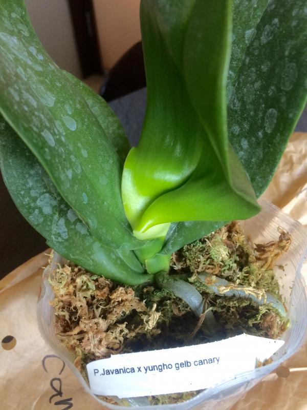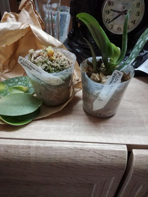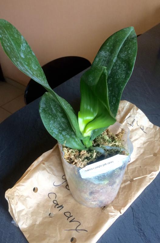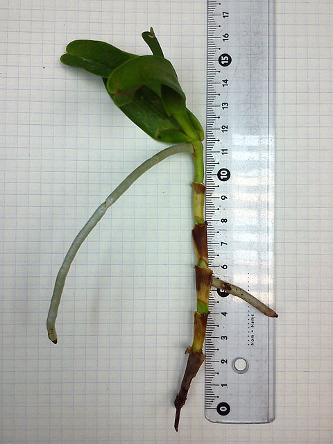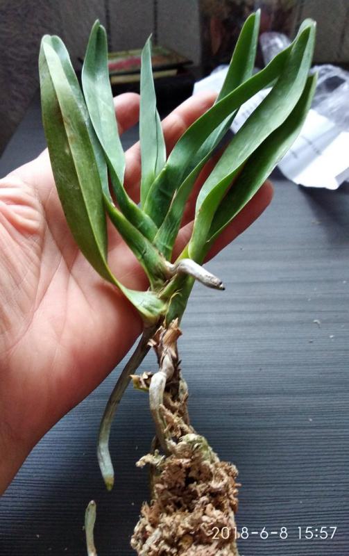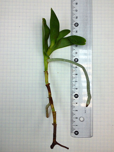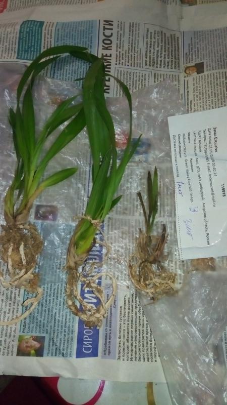ОКС, четыре листа отпало, когда разворачивал сверток, осталось три листа с очень сниженным тургором и один невыросший, корней целых два с черными кончиками, не цвела.
