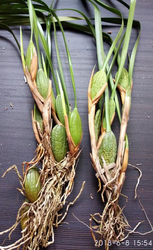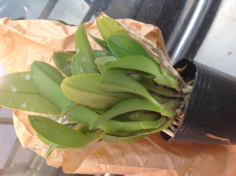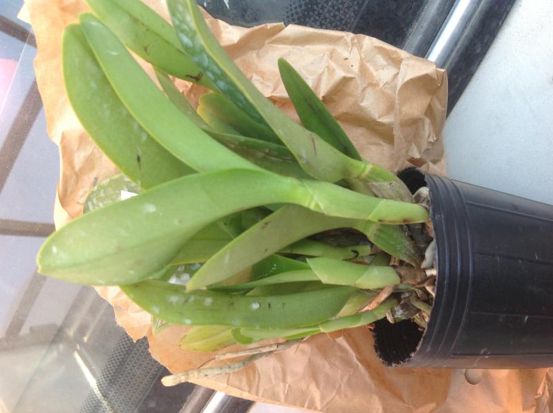 ОКС, четыре несформированные сильносдутые бульбы-тростиночки, высота "бульб" 20-30 мм, корни подрезаны под ноль (не знаю, как надо было додуматься до этого). Обещалось растение размера цветения - в таком размере эта орхидея не цветет, поэтому