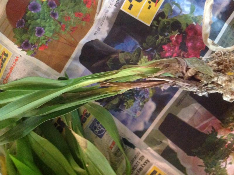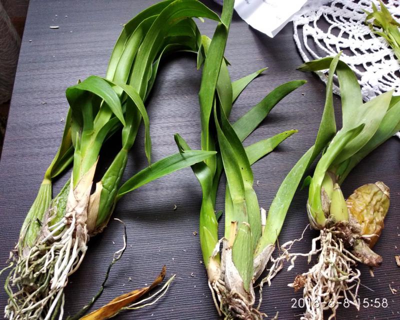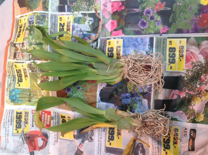 ОКС, пять сдутых бульб высотой около 5 см, четыре роста, шикарные длинные листья до 50 см, корни сухие, подрезаны, не цвела.
