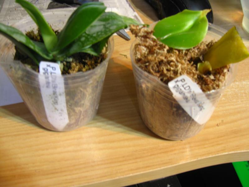 Орхидея в сухом мхе, горшок 1,7, высота растения 45 мм, тургор нормальный, есть детка и проснувшаяся почка, корешки уходят в мох, не цвела.