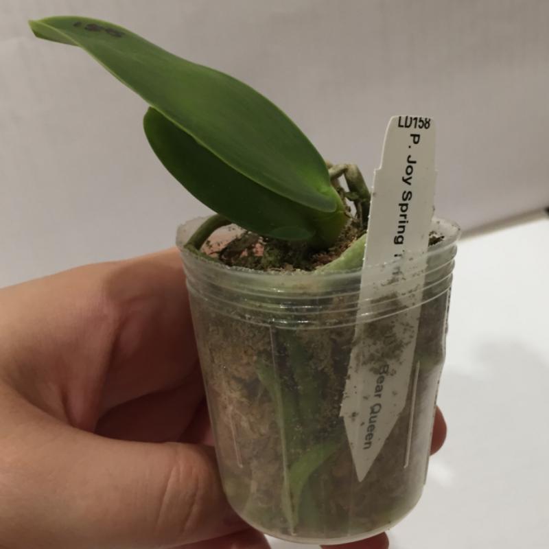 Было заявлено растение 1,7 - пришел микроб о двух листиках, с биркой от POM\Amanda (Phal KS Pride 'Golden Diamond'). Корней сквозь стенки было не видно, пришлось раскапывать. Видеть, собственно, оказалось и нечего: 1 маленький корешок, вплотную к нему гниль. Очень, очень эксклюзивный заказ...