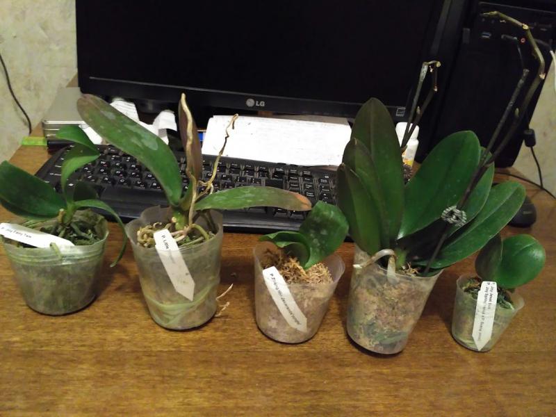 И фото всех вместе приехавших заказов.Из 5 трое ранее уже цвели.Ирине большое спасибо за упаковку! Посылка пришла помятая, но орхочки не пострадали.