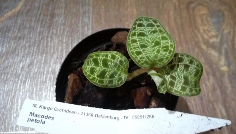Macodes petola в горшке 8см сложный субстрат из коры, мха, губки и еще чего-то. Листики чистенькие красивые блестят. В горшке 1 растение. Спасибо большое!