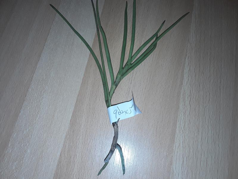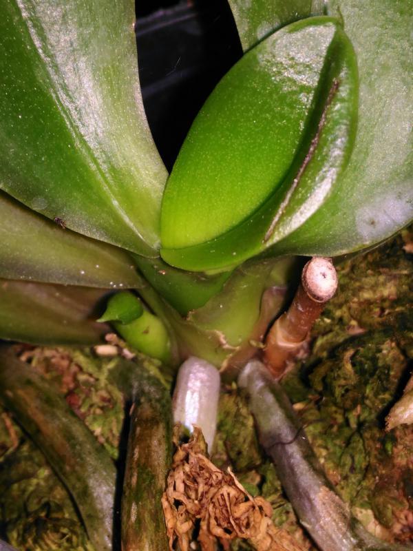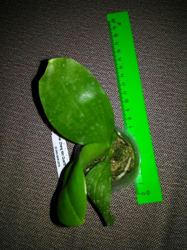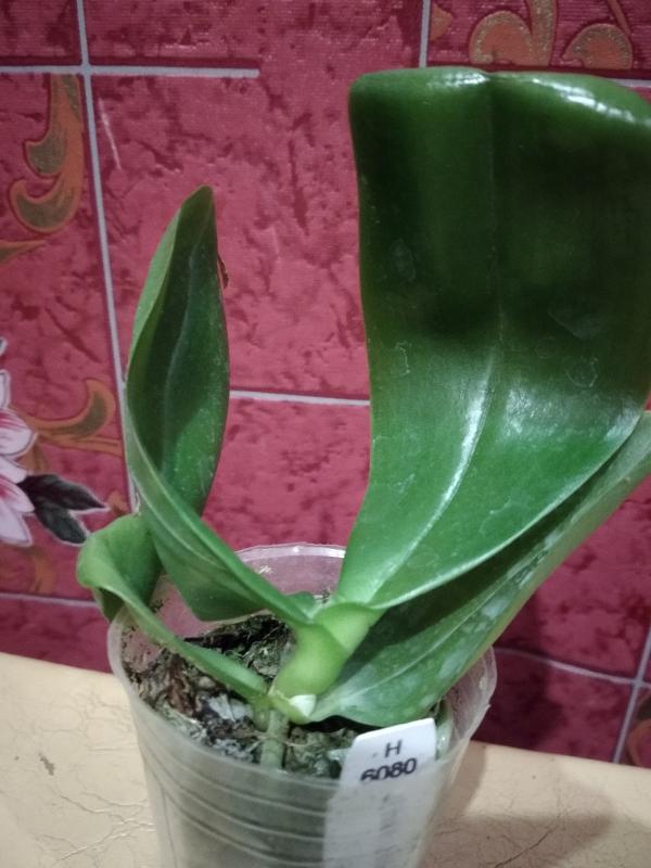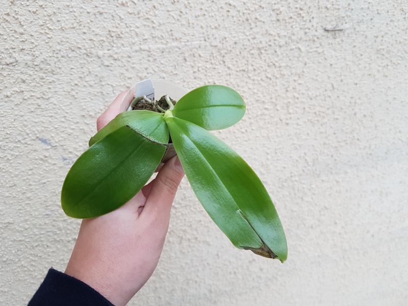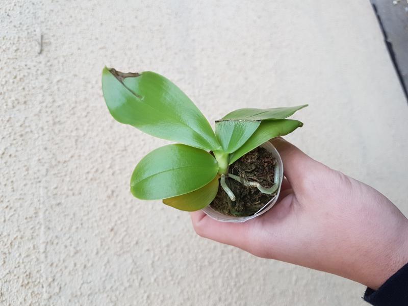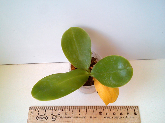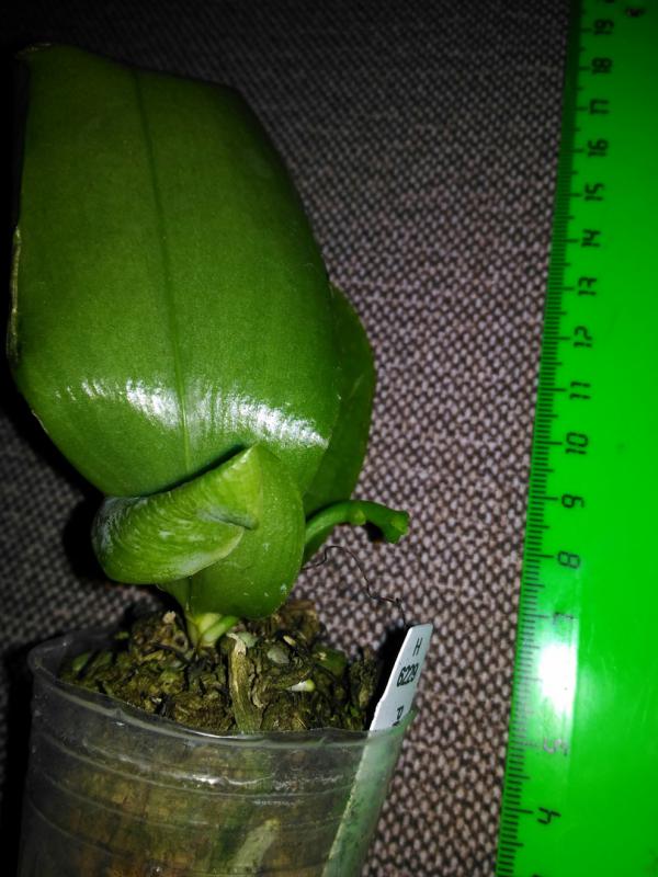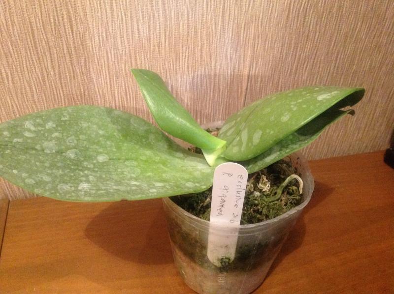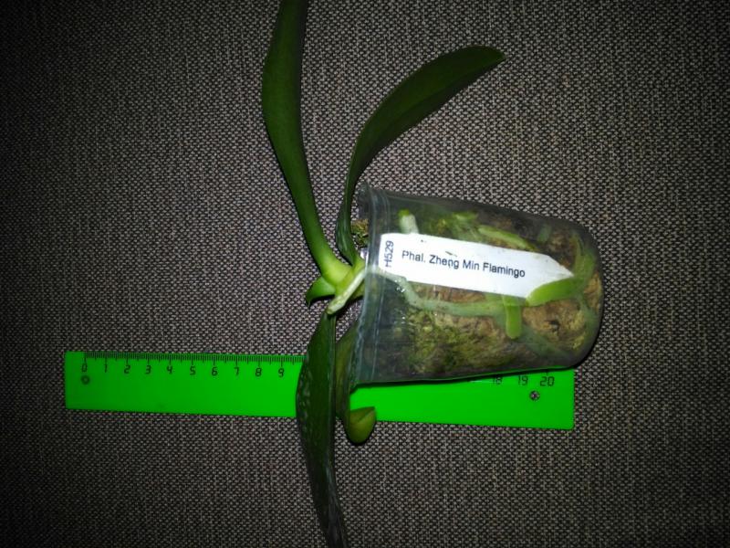 Пришло растение с тремя листиками, самый длинный из которых 13 см, а самый маленький полсантиметра. Корней живых много. В стаканчик этого размера перевалено недавно. Внешний слой мха свежий, корни к нему еще не пробились.