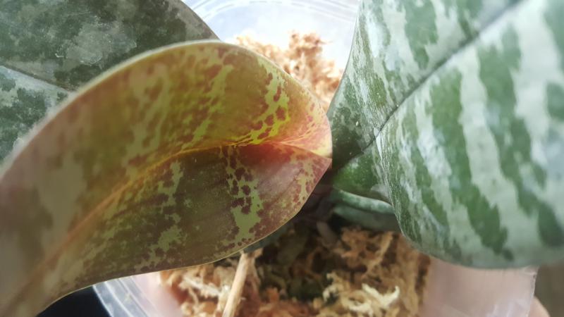 Единственное растение вызывает вопрос, форумчане, подскажите пожалуйста, присутствуют пятна на листочках у YangYang Super Zebra. Я обработала смесью гамаира и алирина. Что-то нужно ещё сделать. Верхние три листочка замечательные, очень хорошие корни, хочется, вылечить растение, я уже подумываю об удалении этих листочков.