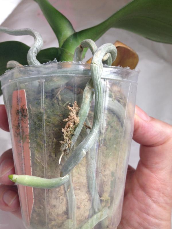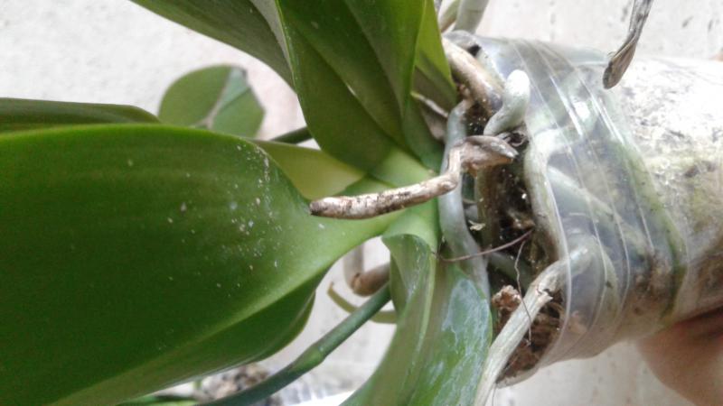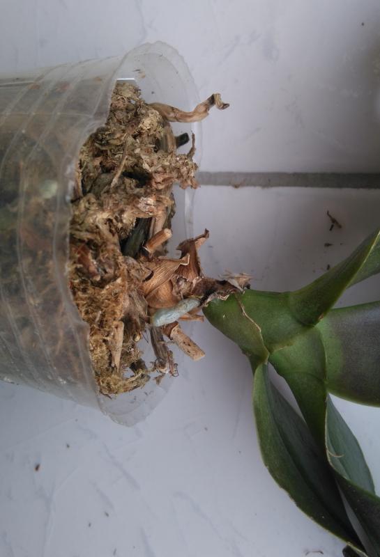 Взрослое, ранее цветшее, дряхленькое в части сопревшей корневой, перекинут совсем недавно в большой горшок: