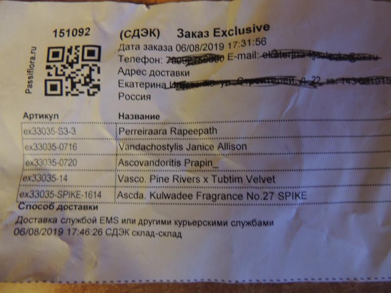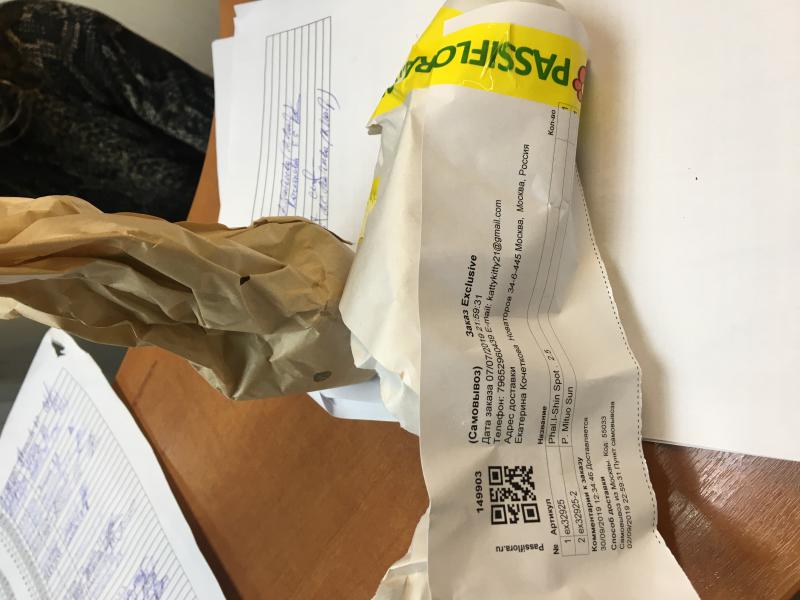 Заказ ex. 32925, в котлом было два растения I-Shin Spot и Mituo Sun. Доставлен 08.10 в пункт самовывоза, забран оттуда 09.10. В посылке был только Mituo Sun, судя по бирке.