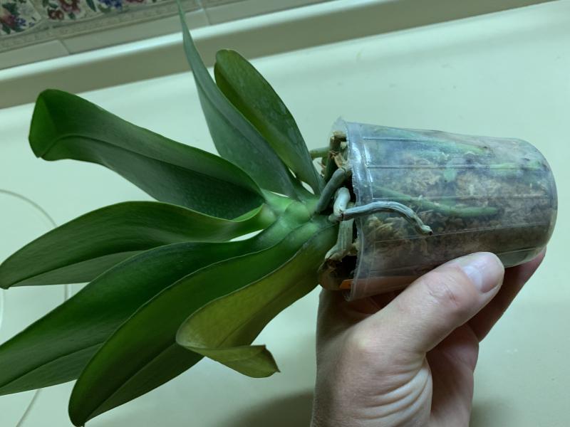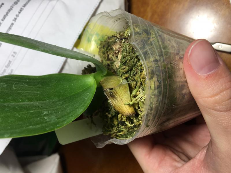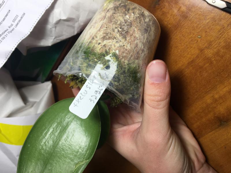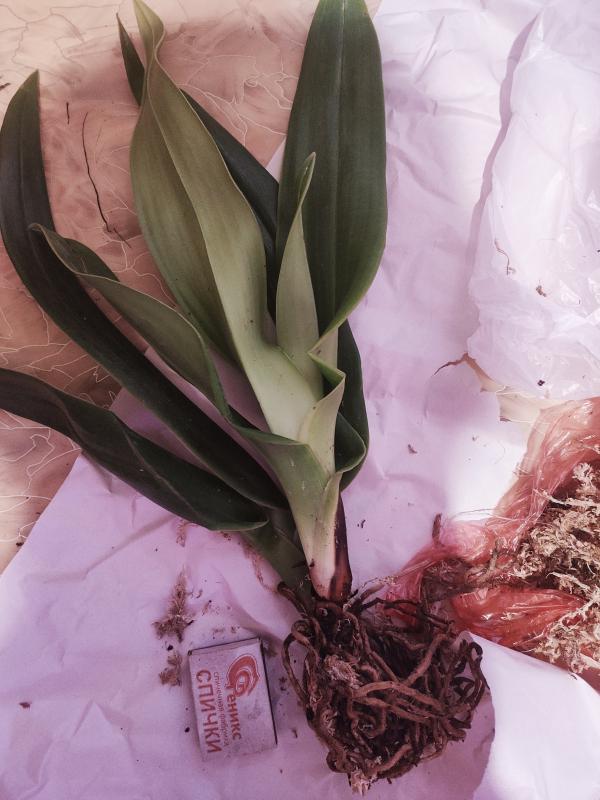 Растение с окс, корни обернуться мхом. Две большие розетки. Корни в основном плотные не гнилые. Видимых проблем нет.