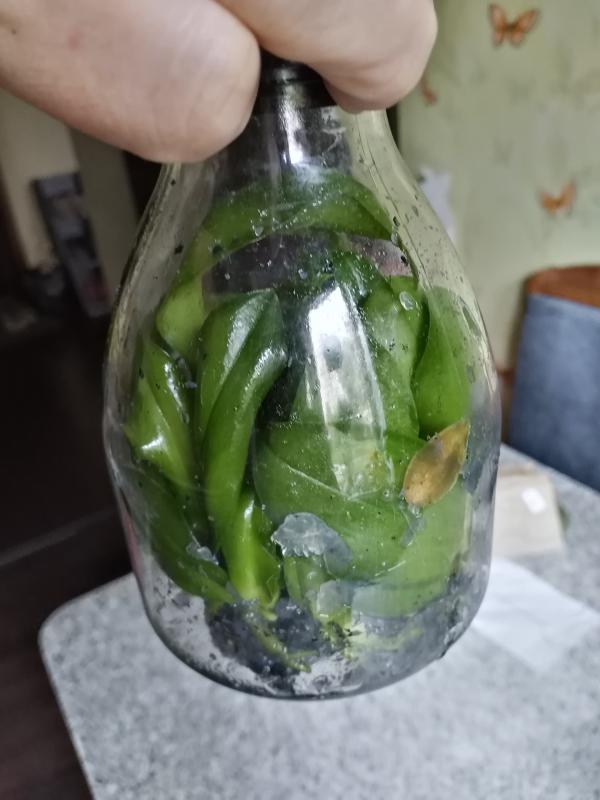 Заказ от мики, в заказе flask Phal. schilleriana _ sib , на фласке не было ни какой бирки или этикетки, фласка вся разболтанная, пришлось сразу вскрыть. Мне кажется что растения во фласке не имеют ничего общего с заказным растением. Вопрос что за растения во фласке.