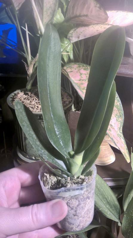Быстрый заказ всего 3 недели после оплаты. Прекрасный подросток, полноценного размера 2,5. Две пары больших листьев в отличном тургоре, самый большой лист 13см. Мох был хорошо просушен, видны корни. Растение цвело, виден старый цветонос.