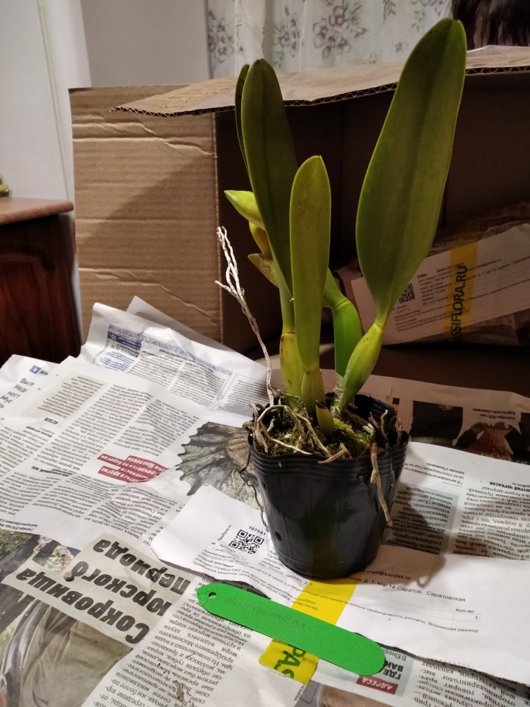 Заказ #168800 Спецпредложение ex40101-OY_11 Rlc. Focus taiwan. 2,5 . Получено на третий день из ПВЗ. Было завернуто в газету с портретом)). Хорошее, здоровое растение. 5 бульб, она срезана. Мох хорошо просушен. Бульбы и листья с хорошим тургором. Дороги, кажется, не заметило.