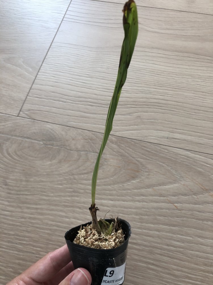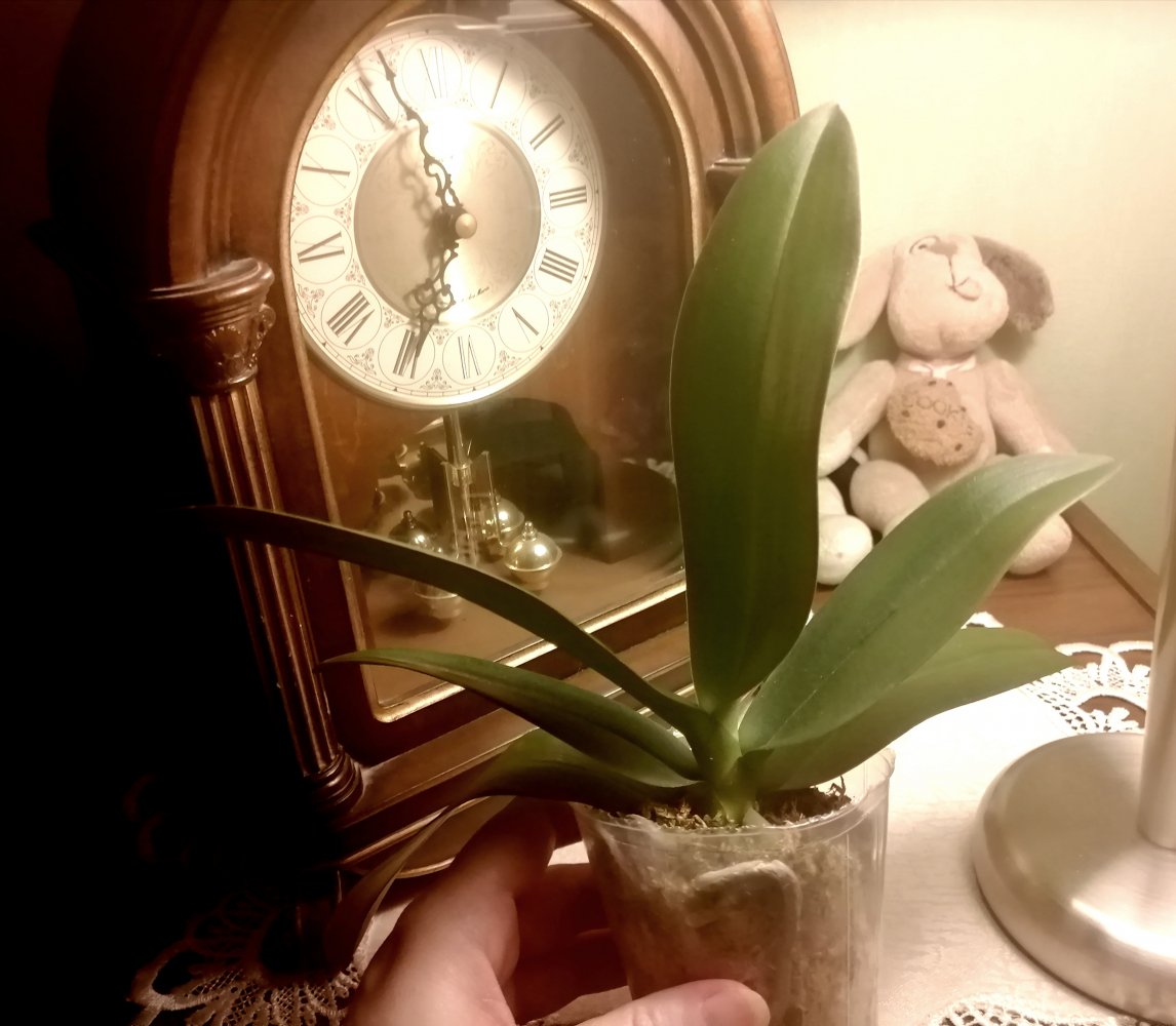 В заказе Angraecum Lady Lisa x sesquipedale. Растение выглядит крепким, есть корни. В пути на крайние листья сел коричневый грибок, и ещё подозрительное пятно на листе, не водянистое, но требует внимания. В целом я довольна.